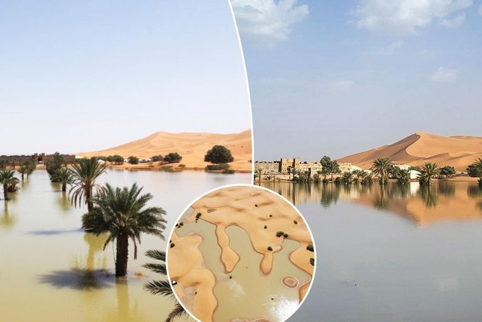 Những hình ảnh ấn tượng từ sa mạc Sahara gần đây cho thấy những hồ nước lớn nằm trên những cồn cát nhấp nhô sau khi một trong những nơi khô cằn nhất thế giới phải hứng chịu trận lụt đầu tiên sau nhiều thập kỷ.
