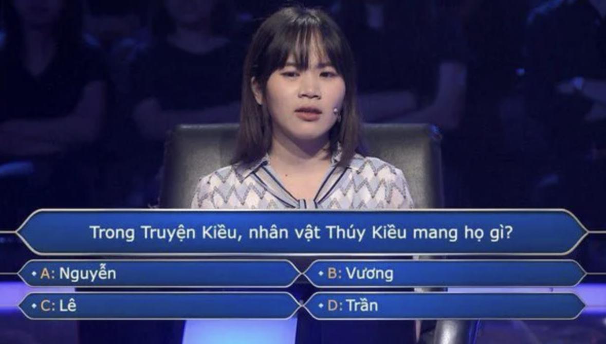 Trong chương trình "Ai Là Triệu Phú", ban tổ chức từng đưa ra câu hỏi: "Trong Truyện Kiều, nhân vật Thúy Kiều mang họ gì?", kèm theo bốn lựa chọn: họ Nguyễn, họ Vương, họ Lê và họ Trần.