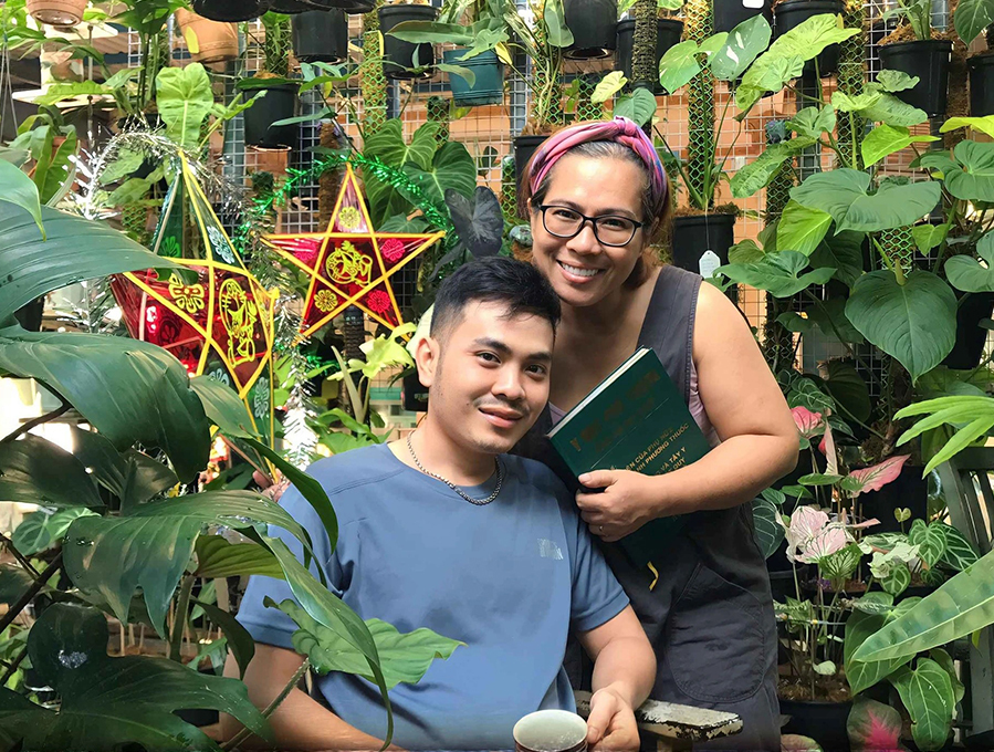 Vợ chồng Hoàng Phước, Hồng Hoa tại quán cà phê của họ tại TP Thủ Đức. Ảnh: Nhân vật cung cấp