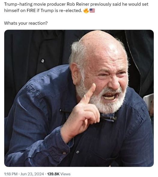 Default Đạo diễn Rob Reiner tuyên bố sẽ tự thiêu nếu ông Trump đắc cử (Jun 23, 2024).