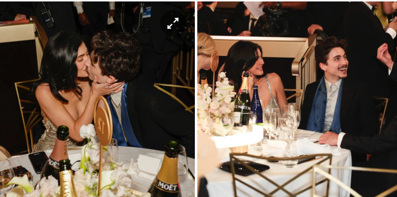 Kylie Jenner và Timothée Chalamet hôn nhau tại lễ trao giải Quả cầu Vàng. Ảnh: JustJared.