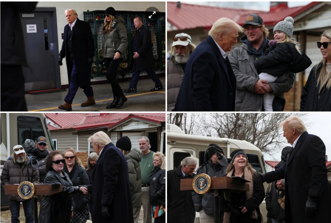 Tổng thống Mỹ Donald Trump nói chuyện với những người bị ảnh hưởng bởi cơn bão Helene, khi ông đi thị sát các khu vực bị cơn bão tàn phá để đánh giá nỗ lực phục hồi tại Swannanoa, Bắc Carolina, Mỹ, ngày 24/1. Ảnh: Reuters.