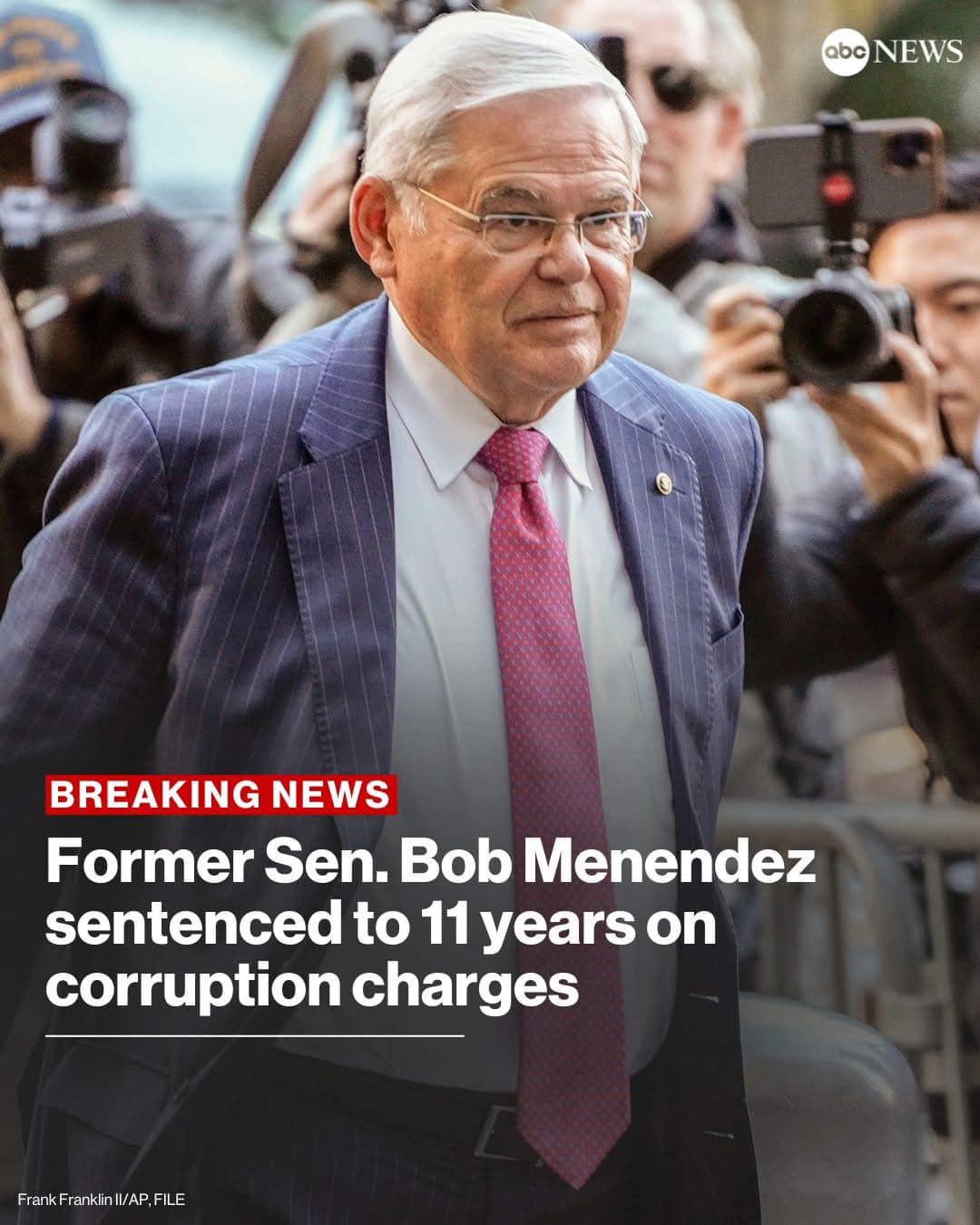-Thượng nghị sỹ Bob Menendez, dân chủ, vừa bị tuyên án tù 11 năm vì tội nhận hối lộ.