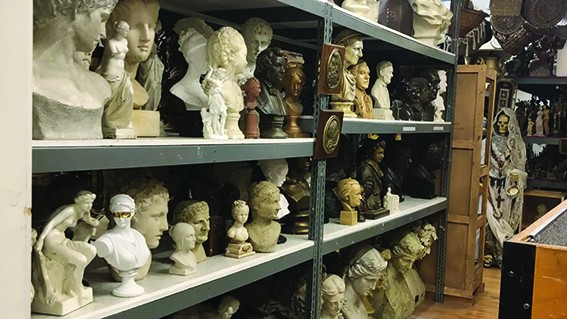 Những chiếc kệ cao từ sàn đến trần nhà chứa đầy tượng bán thân bằng đá cẩm thạch (tự nhiên và nhân tạo) tại kho đạo cụ tham quan phim trường Warner Bros.Ảnh: CNBC
