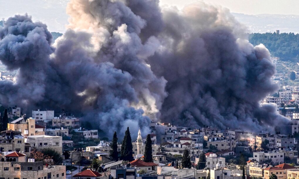 Khói bốc lên từ loạt vụ nổ tại trại tị nạn Jenin hôm 2/2. Ảnh: AFP