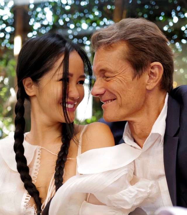 Cô trải lòng: "Ở tuổi này rồi, tôi thấy mọi thứ đều là cái duyên. Anh Gerhard Heusch là kiến trúc sư về kiến trúc hiện đại nổi tiếng. Chúng tôi biết nhau 13 - 14 năm rồi, vì tôi từng đến Mỹ lưu diễn, gặp gỡ những người bạn trong giới làm phim. Đến giờ phút này, tôi chỉ dám nói rằng cả hai chúng tôi có mối quan hệ thân thiết, dựa vào nhau về mặt tinh thần. Anh là chỗ dựa tinh thần cho ba mẹ con - tôi gọi anh là người thân. Anh yêu thương, dạy dỗ hai em bé và được cả hai tin tưởng. Thậm chí, có vấn đề gì về chuyện học tập, hai đứa còn bảo nhau đừng hỏi mẹ mà đi hỏi chú Gerhard Heusch".