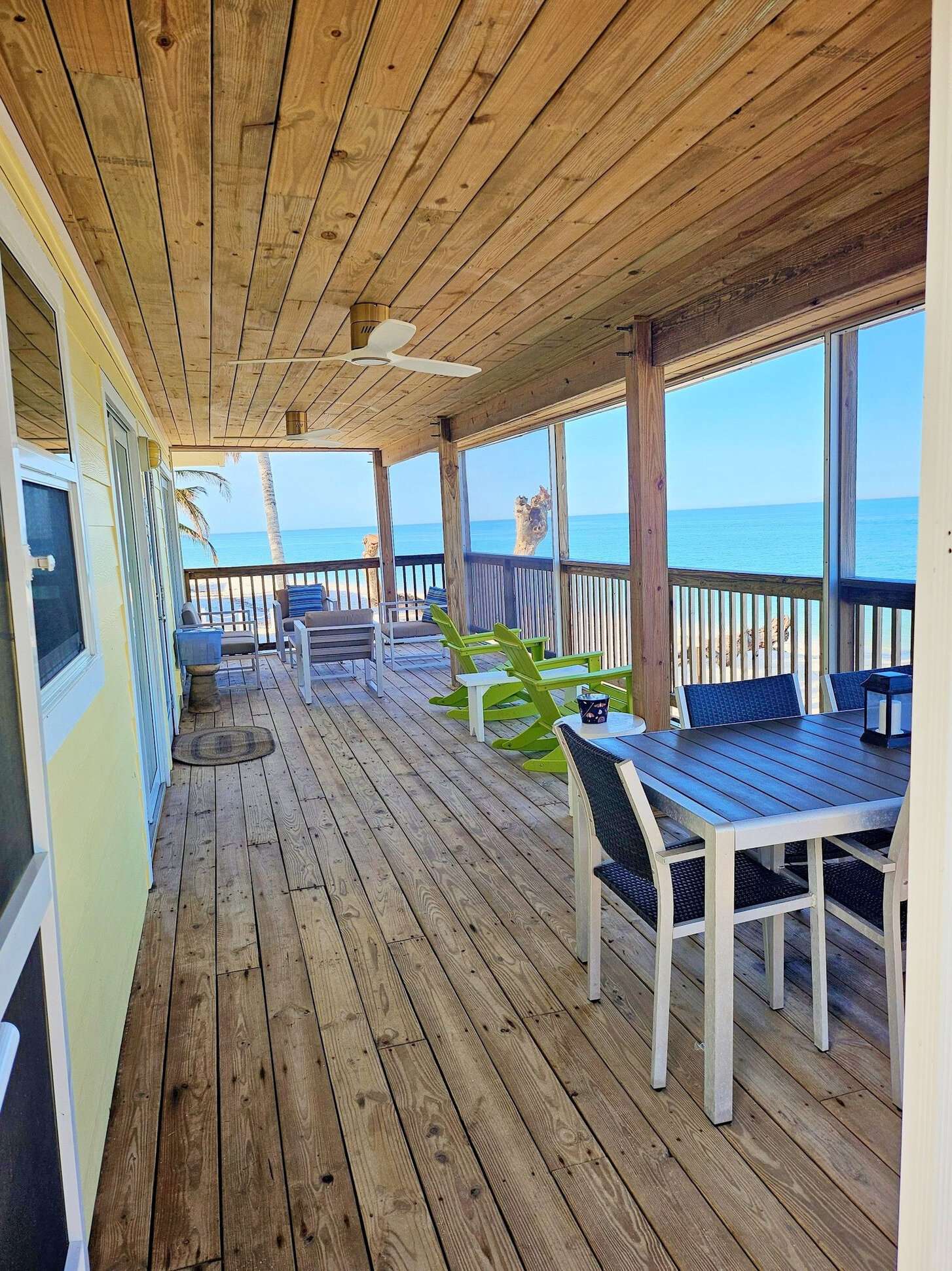 Hiên nhà rộng lớn ở tầng chính là nơi đón nắng, được bố trí ghế nằm sưởi nắng.