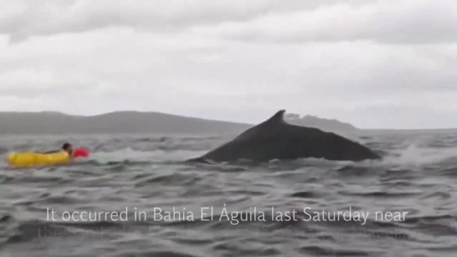 Khoảnh khắc cá voi nuốt nhầm Adrian Simancas ngày 10/2 ở Magellan, Chile. Video: AP