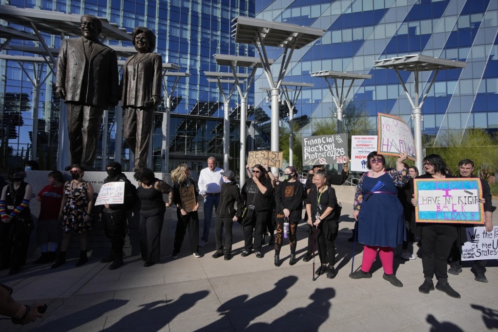Người biểu tình giơ biển kêu gọi ủng hộ chiến dịch không mua sắm tại Las Vegas ngày 26/2. Ảnh: AP