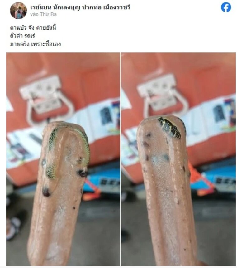 Hình ảnh con rắn nguyên trong que kem. Nguồn: Facebook.