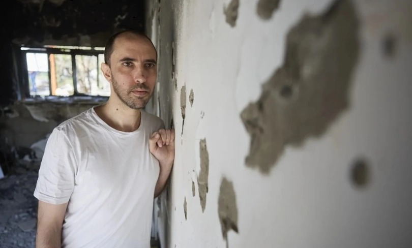 Tal Shoham đứng trong ngôi nhà bị phá hủy của gia đình vợ anh ở khu định cư Be'eri. Ảnh: Fox News