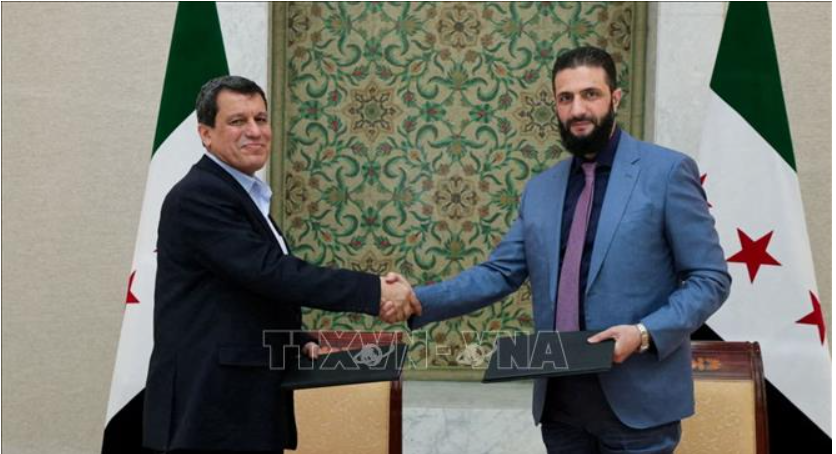 Tối 10/3, chính quyền Syria mới và chính quyền người Kurd kiểm soát khu vực Đông Bắc nước này đã đạt được thỏa thuận về việc từng bước nhập tất cả các cơ quan dân sự và quân sự của người Kurd vào các thể chế quốc gia của Syria. Văn kiện này được Tổng thống lâm thời Syria Ahmed Ash-Sharaa và chỉ huy SDF Mazloum Abdi ký.