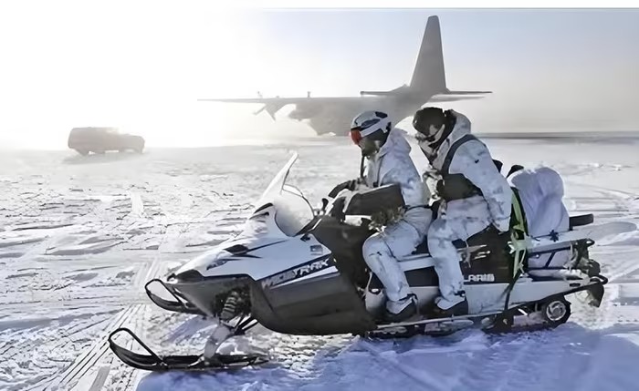 Lính Mỹ dùng xe trượt tuyết tuần tra bảo vệ căn cứ. Ảnh: Ifeng.