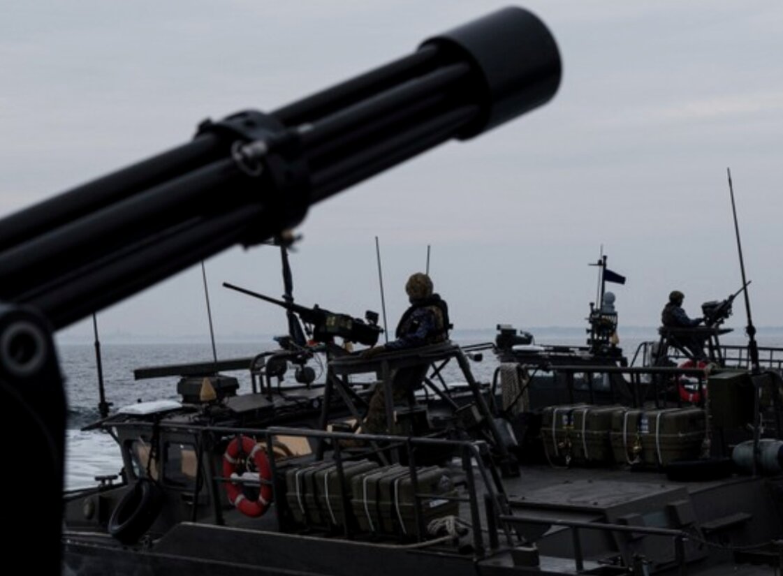 Tàu quân sự CB90 của Hải quân Ukraine tuần tra trên Biển Đen ở Odessa, ngày 27/3. (Ảnh: AP)