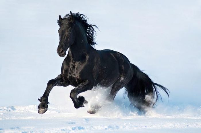 Giống ngựa Friesian với bộ lông đen bóng đặc trưng khiến người ta liên tưởng tới những tráng sĩ quả cảm.
