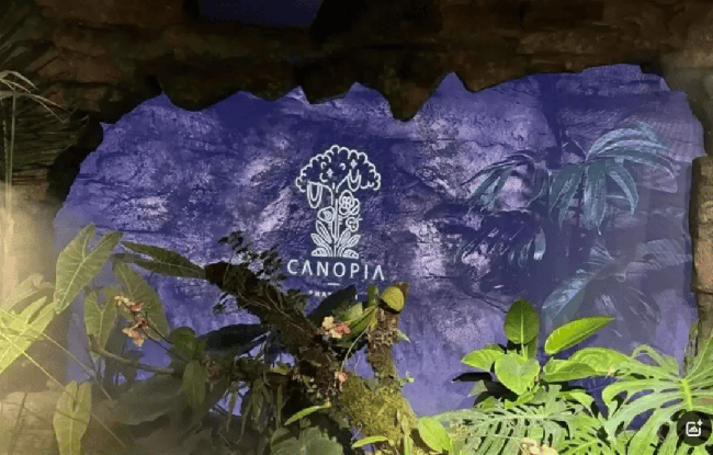 Không gian được thiết kế như một khu rừng nhiệt đới với cây xanh và sương mù bao phủ, mang đến cho thực khách cảm giác như đang lạc vào một thế giới khác.