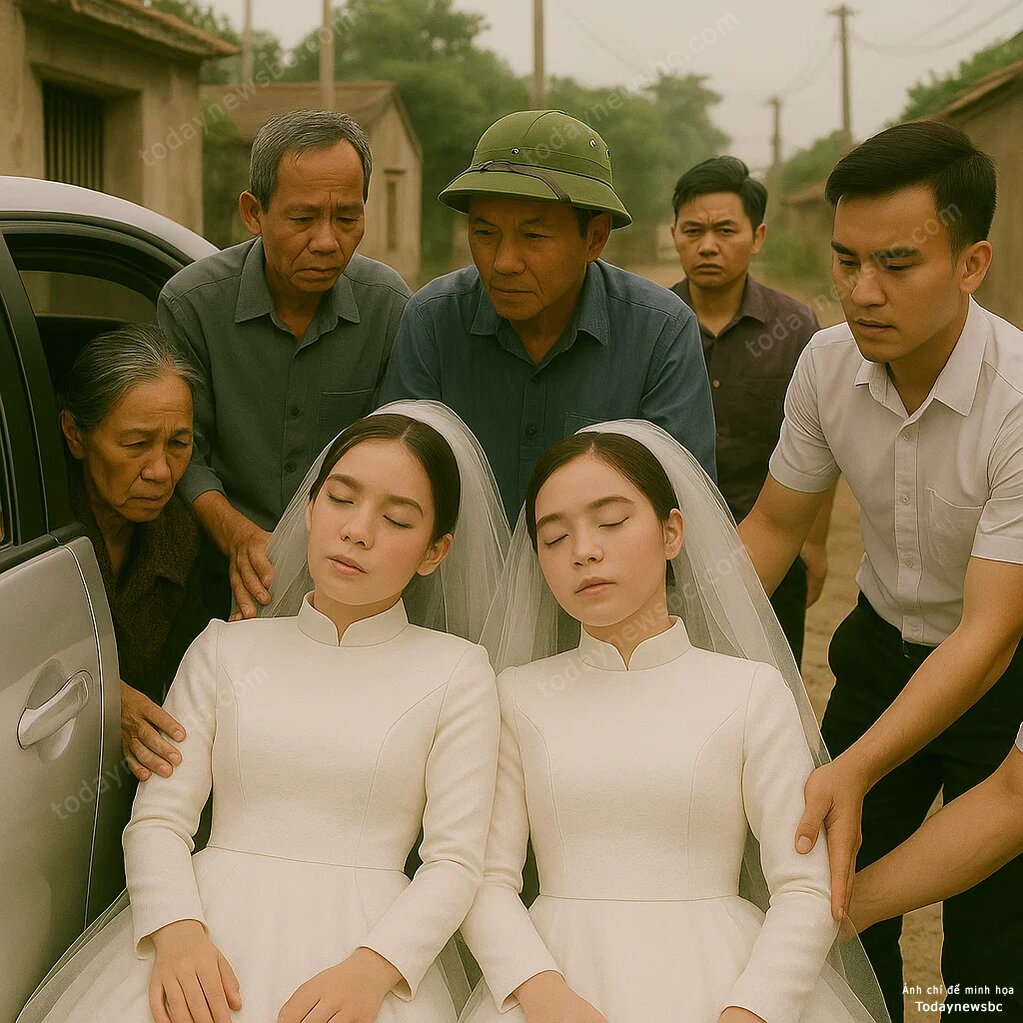 Đúng vậy. Trên xe có hai cô gái mặc váy cưới giống hệt nhau, một người đang bất tỉnh, một người còn đang ngồi yên ở ghế sau cùng, ánh mắt lặng lẽ, như chờ đợi điều gì đó.