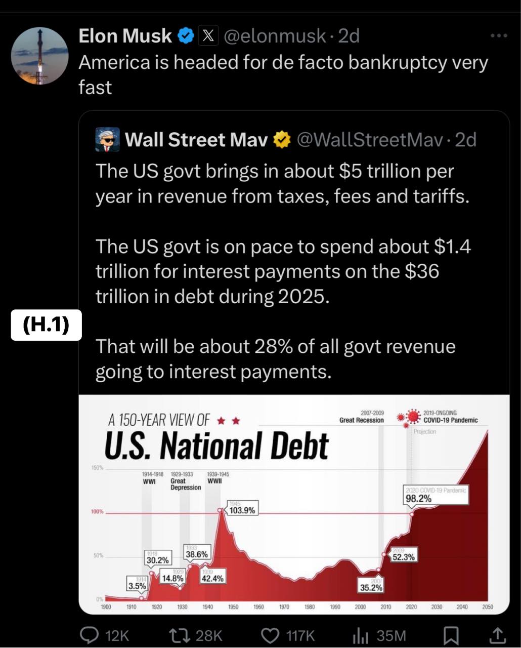Bài phân tích rất hay của anh Lư Xuân Hải - cựu TGĐ ngân hàng ACB - về t́nh h́nh nợ công của Mỹ và phân tích v́ sao ông Trump và Elon Musk đề xuất những chính sách giải quyết để cứu nước Mỹ.