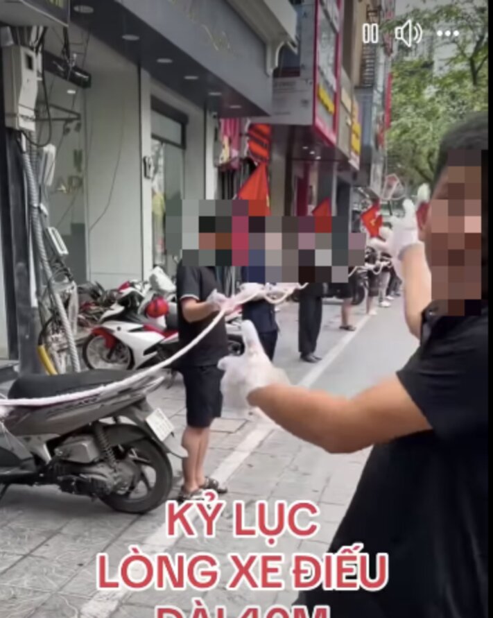 Đáng chú ý, video của một tài khoản trên mạng xã hội được đăng tải từ năm 2024 được cộng đồng mạng tìm lại, theo đó đoạn clip này ghi lại cảnh một chủ quán đang khoe bộ lòng se điếu kỷ lục ở Việt Nam, dài tới 40 m, liên tưởng như chuẩn bị cắt băng khánh thành.