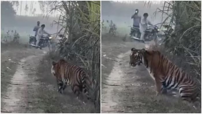 Cuộc chạm trán ở cự ly cực gần giữa một người nông dân và một con hổ trên cánh đồng ở Pilibhit, Uttar Pradesh, Ấn Độ đã được ghi lại trong một video được chia sẻ trên X bởi sĩ quan IFS Parveen Kaswan.