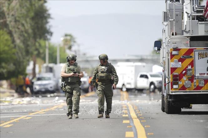 Lực lượng chức năng tại hiện trường vụ nổ bom ở thành phố Palm Springs, bang California, Mỹ ngày 17/5/2025.