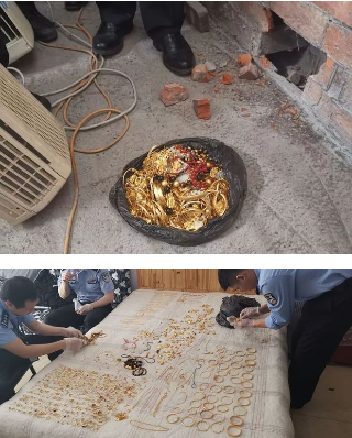 Cảnh sát Trung Quốc tìm thấy số vàng tội phạm đánh cắp từ một tiệm trang sức được giấu bên trong một bức tường.
