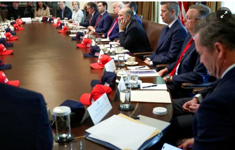 Cố vấn An ninh Quốc gia Mỹ Mike Waltz kiểm tra điện thoại di động của mình trong khi tham dự cuộc họp nội các do Tổng thống Mỹ Donald Trump tổ chức tại Nhà Trắng ngày 30/4. Ảnh: Reuters.