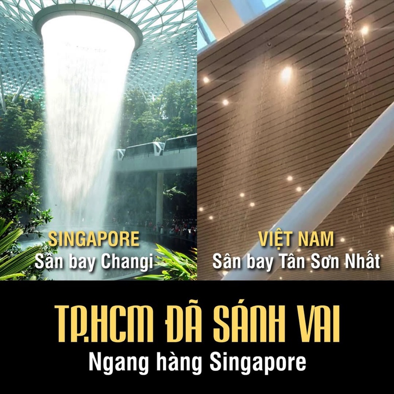 Nếu như Singapore nổi tiếng v́ có công tŕnh cảnh thác nước khổng lồ ở sân bay hiện đại bậc nhất thế giới Changi, th́ nay Việt Nam cũng đă làm được một công tŕnh tương tự mang tên T3. Vậy là thoả ước mơ biến Tp.HCM xứng tầm với Singapore của đám lănh đạo Việt bao năm nay. Thậm chí c̣n vượt mặt là đằng khác, v́ sân bay Changi là do chủ đích con người tạo nên, c̣n T3 theo như phát biểu quen thuộc th́ là do...mưa, tức là sản phẩm thiên nhiên đúng nghĩa.