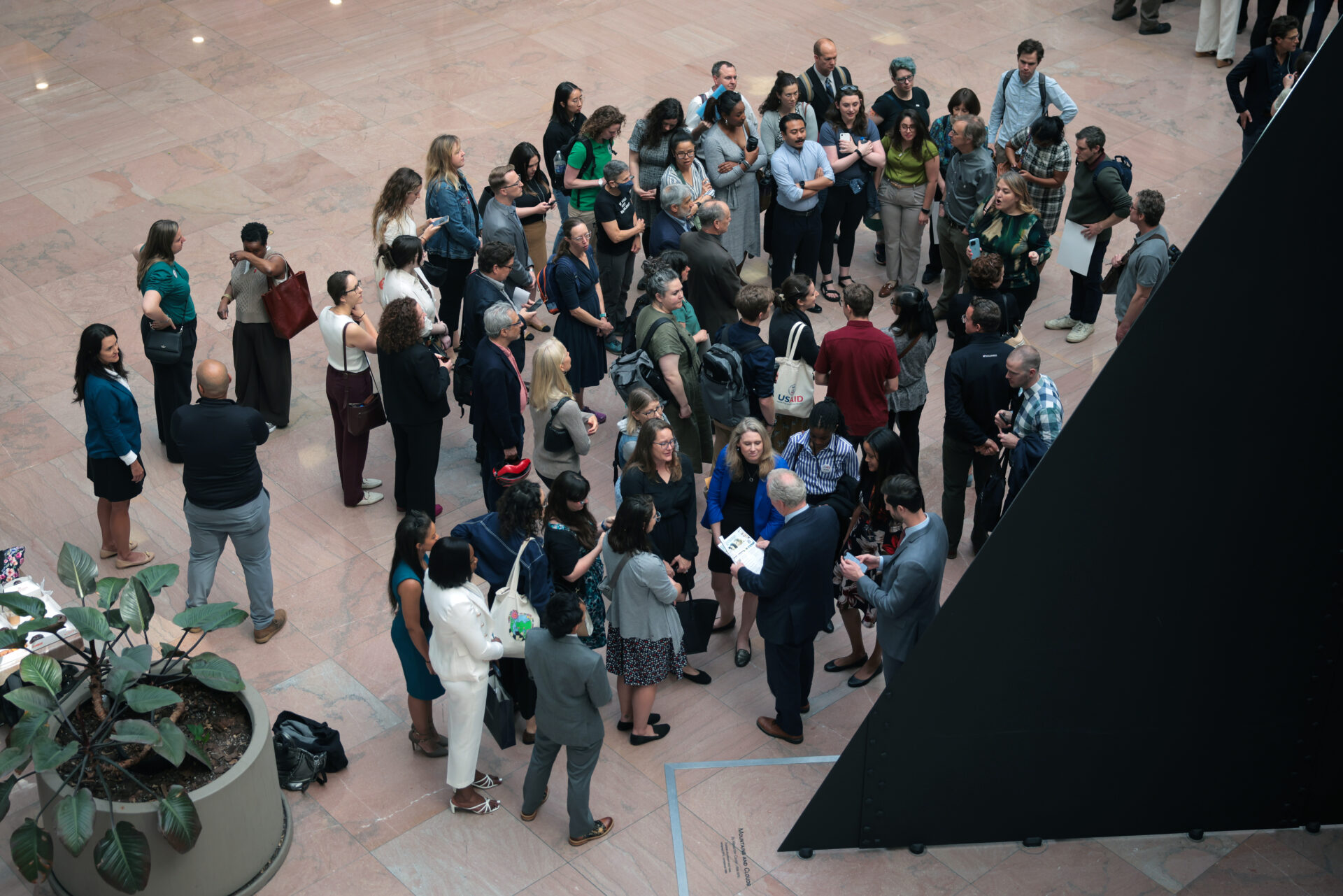 Công chức liên bang bị cho sa thải đang tập trung tại sảnh chính trong tòa nhà Thượng Viện Hart Office Senate Building ở Washington, D.C., hôm 29/4/25. (Ảnh minh họa: Kayla Bartkowski/Getty Images)