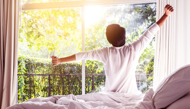 Khi thức dậy vào buổi sáng, hãy mở mắt và nằm trên giường trong vòng 2 phút, điều này có thể giúp cho não bộ được tỉnh táo. (Ảnh: Theofy)