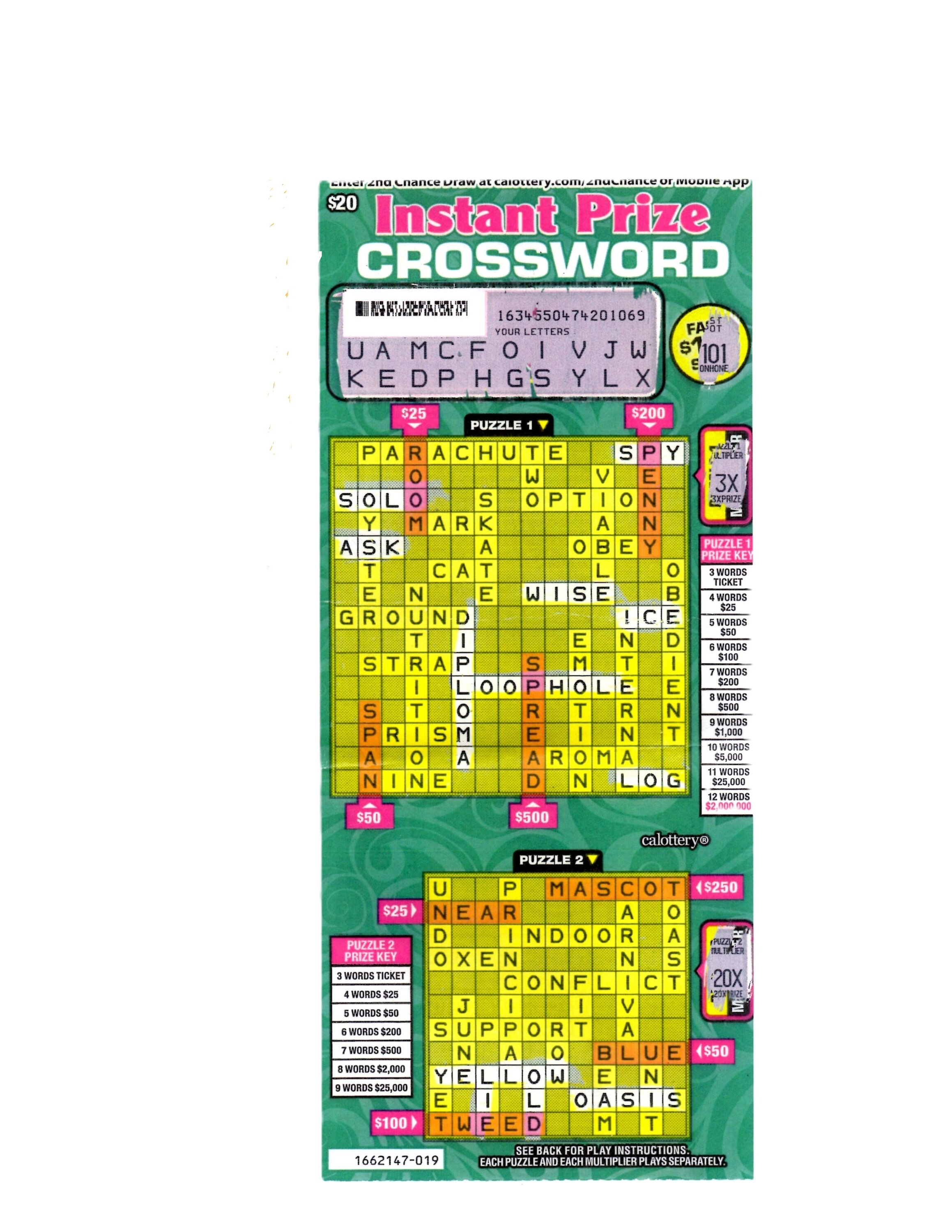 Riêng cá nhân tôi, thỉnh thoảng cũng mua vài tờ chơi và hôm tháng rồi trúng được 2,000 USD với tờ vé số cào INSTANT PRIZE CROSSWORD 20 USD