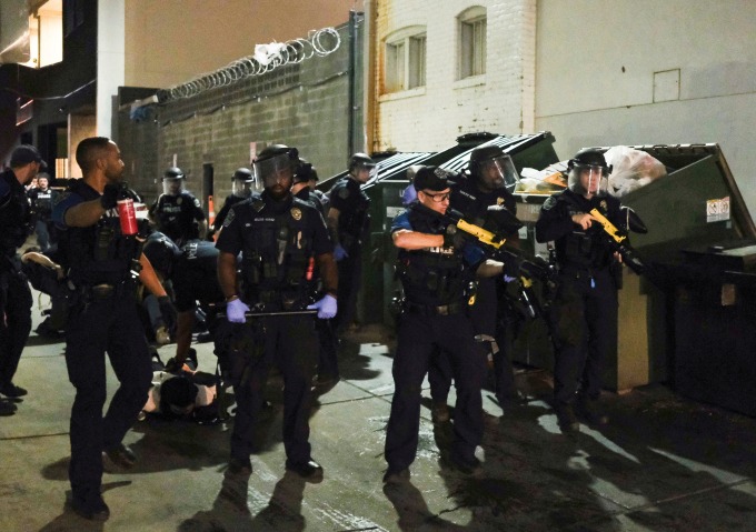 Cảnh sát thành phố Austin, bang Texas, trấn áp người biểu tình đêm 9/6. Ảnh: Reuters