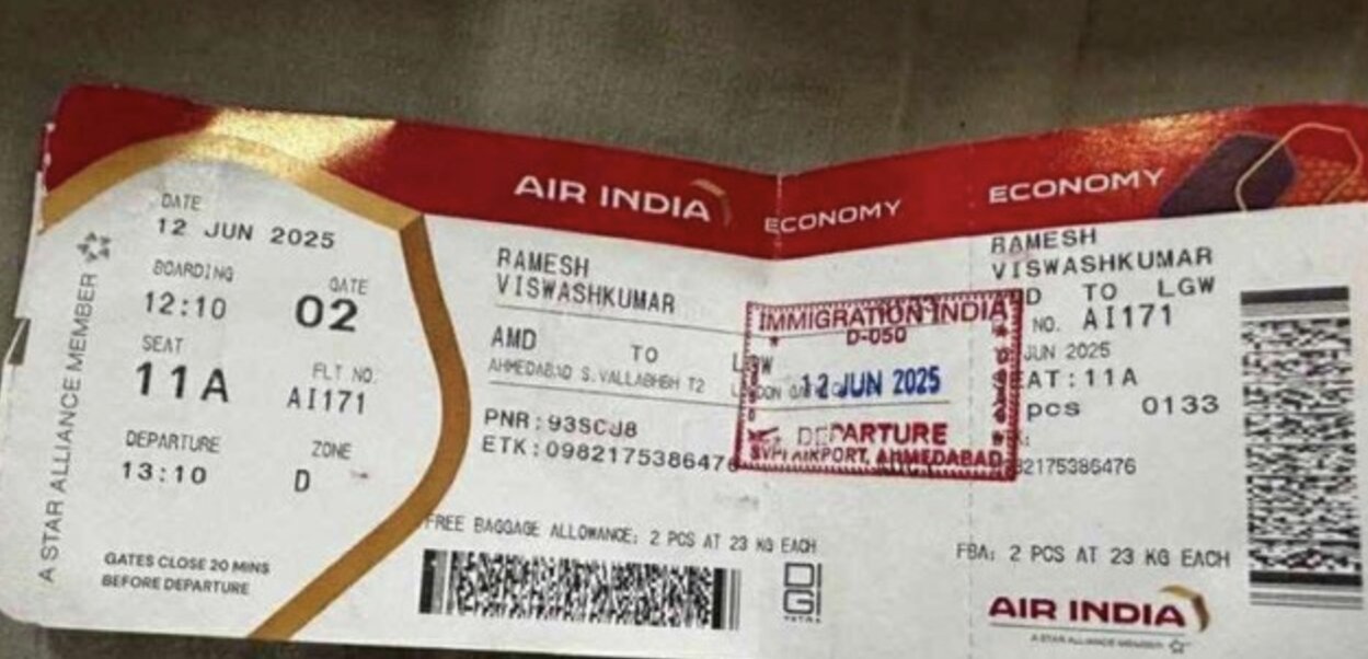 Old  Default Hé lộ tấm vé của nạn nhân ngồi ghế 11A - người được cho là duy nhất sống sót trên máy bay Ấn Độ vừa rơi