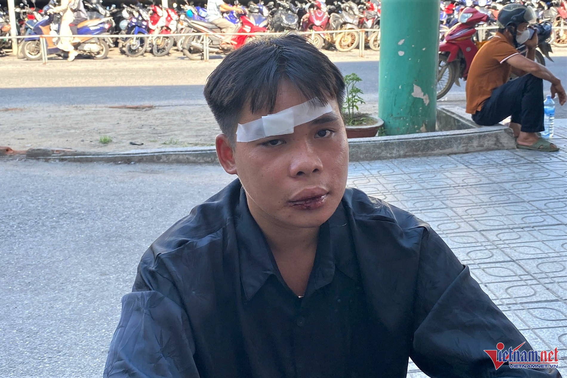 Vừa được băng bó vết thương, máu vẫn còn loang lổ trên áo, ông Đỗ Đình Thiệu (quê Thanh Hóa) cho biết mình bị gãy chân, chấn thương vùng đầu.