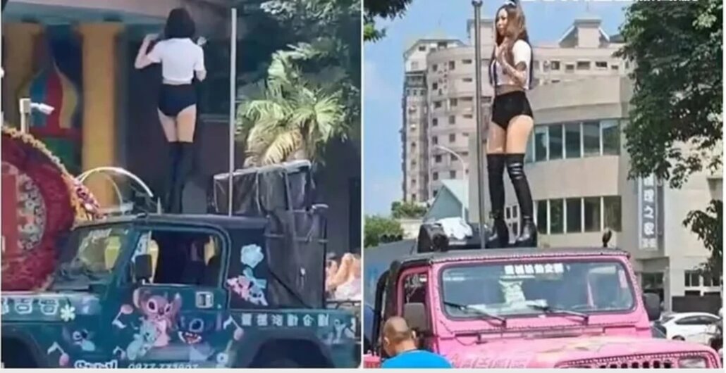 Một cặp vợ chồng ở Đài Loan đã gây tranh cãi khi thuê hai vũ công cột ăn mặc gợi cảm biểu diễn trước cổng trường trung học cơ sở để chúc mừng lễ tốt nghiệp của con trai.