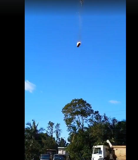 Video trên mạng xã hội cho thấy ngọn lửa bốc lên từ giỏ chở khách, khiến khí cầu bị xẹp. Phần giỏ sau đó tách rời và rơi tự do.