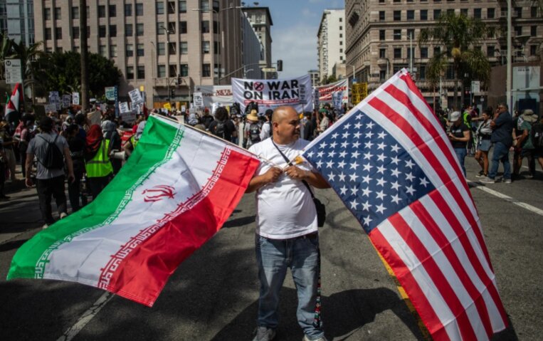 Biểu tình phản đối chiến tranh tại Los Angeles, Mỹ hôm 7/6 (Ảnh: Getty).