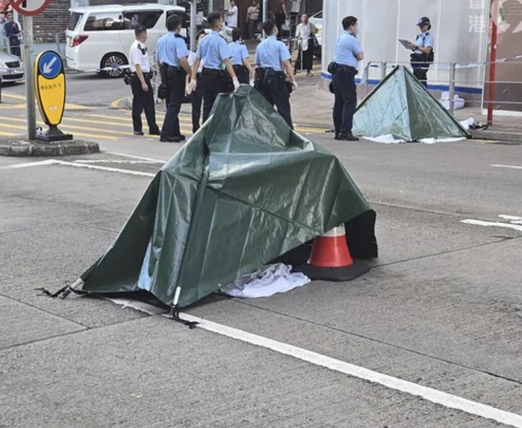 Hiện trường vụ đạo diễn Đường Giai nghi nhảy lầu tự tử. Ảnh: HK01.