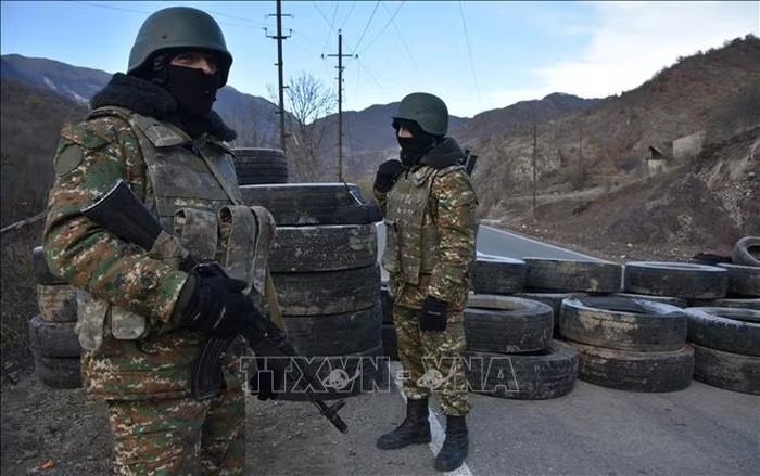 Binh sĩ Armenia gác tại một trạm kiểm soát gần huyện Kalbajar. Ảnh tư liệu: AFP/TTXVN
