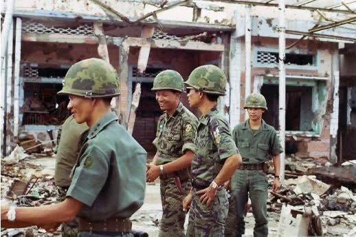 Hình 1: Từ trái: Trung tướng Ngô Quang Trưởng – Tư lệnh Quân đoàn 1, Đại tá Ngô Văn Định Lữ đoàn trưởng LĐ 258 – Lữ đoàn Bắc Bình Vương và Thiếu tướng Bùi Thế Lân, Tư lệnh Sư đoàn TQLC QLVNCH