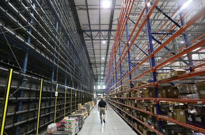 Một giám sát viên bước qua kho phân phối tạp hóa Peapod tại Jersey, New Jersey, Mỹ, ngày 21/8/2018. Ảnh: Reuters