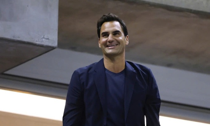Roger Federer trên khán đài xem trận tứ kết đơn nữ Mỹ Mở rộng giữa Aryna Sabalenka và Zheng Qinwen, tại New York ngày 3/9/2024. Ảnh: AP