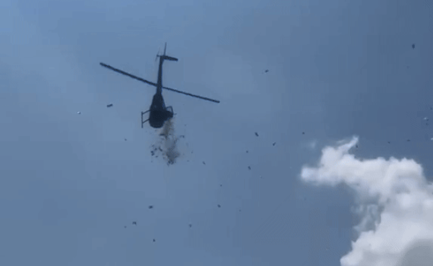 Chiếc trực thăng rải 5.000 đô la xuống theo mong ước trước khi nhắm mắt của ông Thomas.