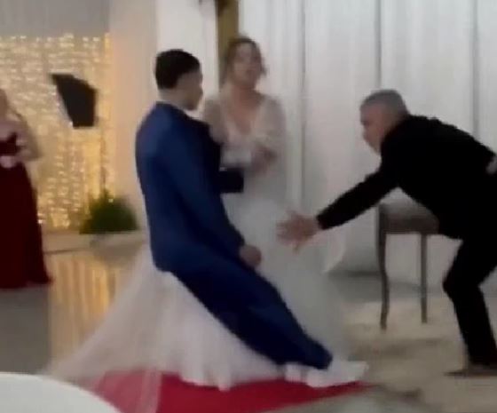 Theo nội dung video, chú rể Gustavo Schmitz (23 tuổi) đang đứng cạnh cô dâu Pamela Berto Schmitz (25 tuổi) chuẩn bị trao lời thề ước thì anh bỗng loạng choạng, sau đó ngã ngửa ra phía sau.