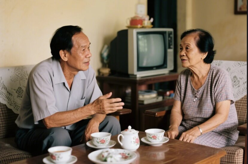 Hai vợ chồng già ngồi nói chuyện: