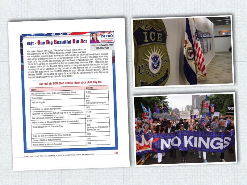 Vào ngày 4 tháng 7 năm 2025, Tổng thống Trump đã ký ban hành Luật One Big Beautiful Bill Act (OBBBA) thành luật. OBBBA đưa ra hoặc tăng các loại phí liên quan đến di trú áp dụng cho nhiều loại đơn xin cứu trợ và bảo vệ khỏi bị trục xuất được xét xử tại Executive Office for Immigration Review (EOIR) (tạm dịch “Văn Phòng Hành Pháp Về Di Trú”), tăng phí cho các đơn kháng cáo trước Board of Appeals (tạm dịch “Hội đồng Kháng Cáo Di Trú”), và tăng phí cho nhiều loại đơn xin (motion) khác nhau trước EOIR. OBBBA còn đưa ra yêu cầu mới về phí nộp đơn xin tị nạn và yêu cầu phí hàng năm cho mỗi năm mà đơn xin tị nạn còn đang chờ xét xử. Các khoản phí này, bao gồm phí nộp đơn xin tị nạn, phí tị nạn hàng năm, và phí cho diện được bảo vệ tạm thời (TPS), không thể được miễn giảm theo quy định của OBBBA. Ngoài ra, OBBBA còn cho phép Bộ trưởng Bộ An ninh Nội địa và Bộ trưởng Tư pháp được quyền tăng các loại phí vượt mức quy định sẵn trong OBBBA.