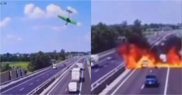 Máy bay hạng nhẹ lao xuống đường cao tốc ở Brescia, miền trung Italy, ngày 22/7. Ảnh: X/SprinterObserver