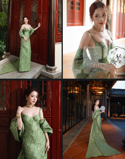 Xuất hiện tại một sự kiện quy tụ dàn khách mời quốc tế, Chi Pu nhanh chóng trở thành tâm điểm chú ý với nhan sắc nổi bật. Diện thiết kế đầm dạ hội màu xanh ngọc, được dựng phom corset ôm trọn vóc dáng và khoe khéo vòng 1 đầy đặn, Chi Pu khiến người xem khó có thể rời mắt trong từng khung hình mà cô xuất hiện.