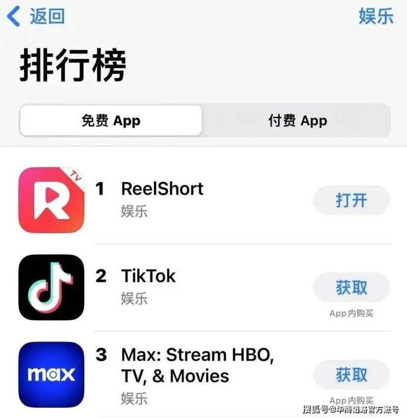 ReelShort đứng đầu top 3 ứng dụng miễn phí tại Mỹ suốt 38 ngày liên tục. Ảnh: Sohu.