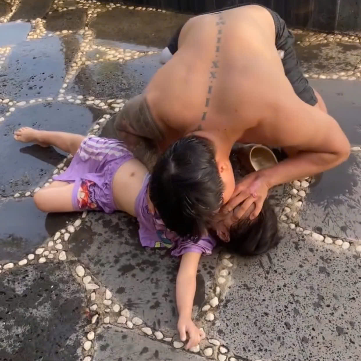 Khoảnh khắc anh Đạt hô hấp nhân tạo cứu sống cháu bé. Ảnh cắt từ clip